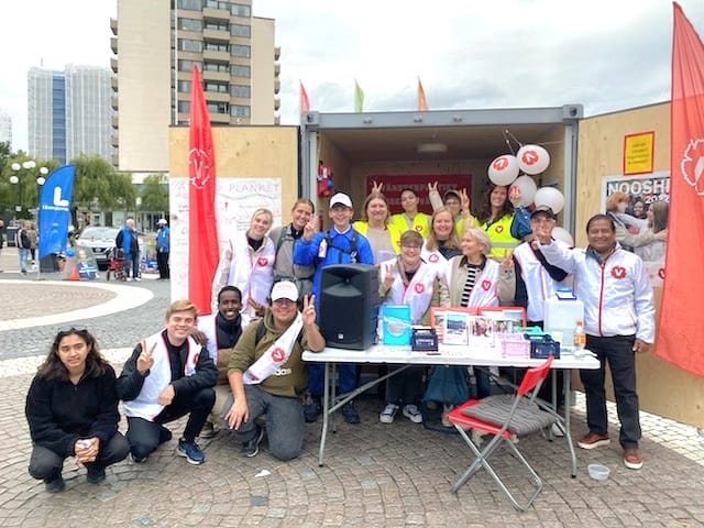 På söndag kommer engagerade medlemmar stå utanför vallokalerna och dela ut röstsedlar. Valstugan i Vällingby är öppen 08:00-20:00.